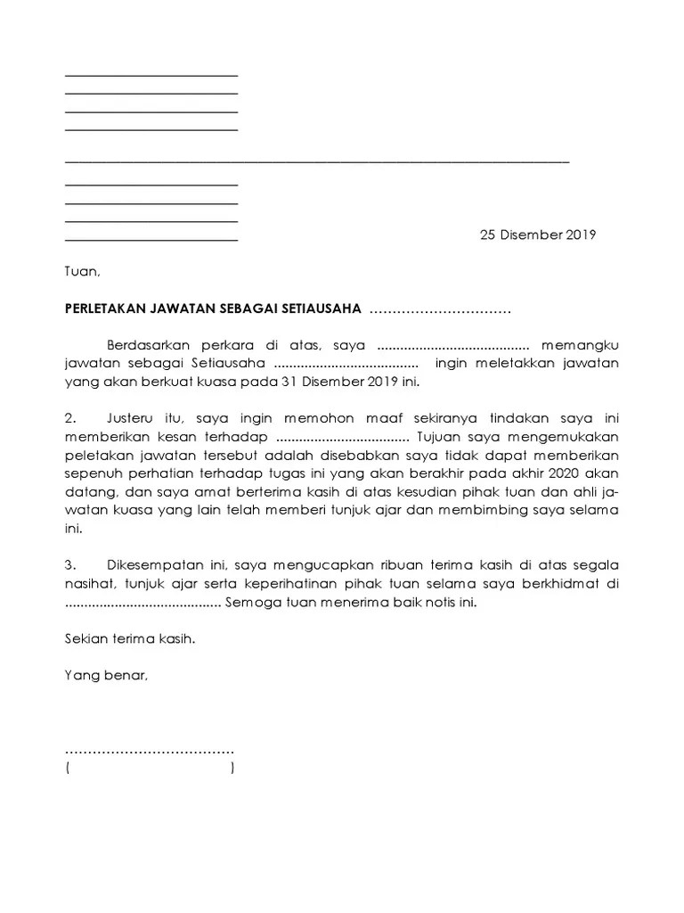 Contoh Surat Perletakan Jawatan Persatuan - Contoh Surat Perletakan Jawatan Politik. Bab 4 badan perundangan 1. Tambahan lagi, mahathir juga meletak jawatan sebagai pengerusi parti pribumi bersatu malaysia (bersatu), yang turut mengumumkan bahawa parti tersebut keluar dari gabungan pakatan … Dec 09, 2012 · dr. Dec 28, 2017 · main dengan bapa mertua tag: Check more flip ebooks related to soalan & jawapan sem 1 (bahagian b)_neat of norhanasibon. Surat perletakan jawatan boleh melibatkan dua situasi. Tuhan bapa ( allah ) 2.